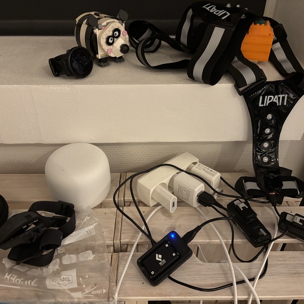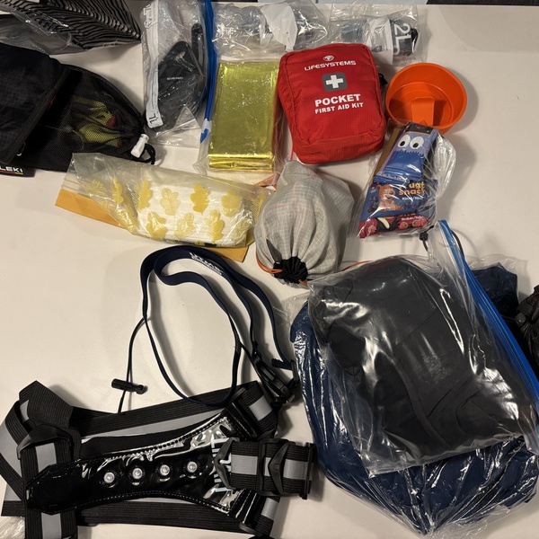 Head lamps (primary and backup - both with spare batteries) and a light(/reflective) vest. Emergency gear: blanket and first aid kit. Many many gels … as in ~20 for the initial part of the route until the (one and only) dropbag zone after 120K (and 10 more gels for after that). Salt tablets. Three 500 ml water flasks, a soup cup and a normal collapsible cup. Toilet paper emergency kit 💩. Extra calories. Hiking poles (Leki). Extra long-sleeved running shirt. Extra waterproof gloves, jacket and trousers.