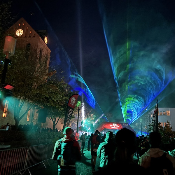 Take a look at the last photo: the weird building illuminated with red light. That was the race’ epilogue: around 5K before the finish line. The race organizers had made the most fantastic loop up to that “castle-looking” building. There were burning torches and theme music playing all the way up to it. And back again 😉 … see after having run up to that, we were sent further away from the finish line! - to cover the remaining 4K. I tried something similar last year (2024) so I saw it coming. But I can imagine the dispair from many runners finding out they weren’t close at all to the finish line 😂.