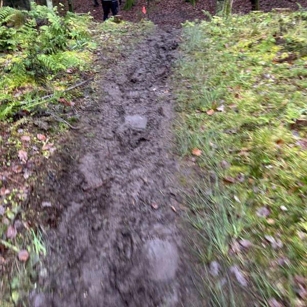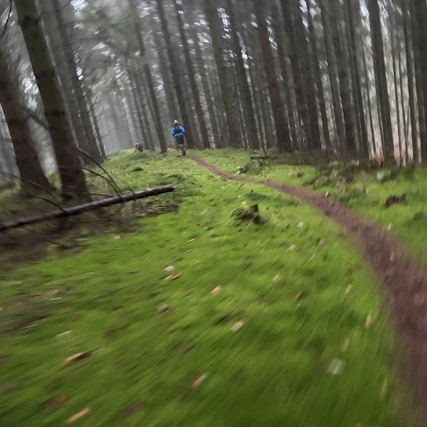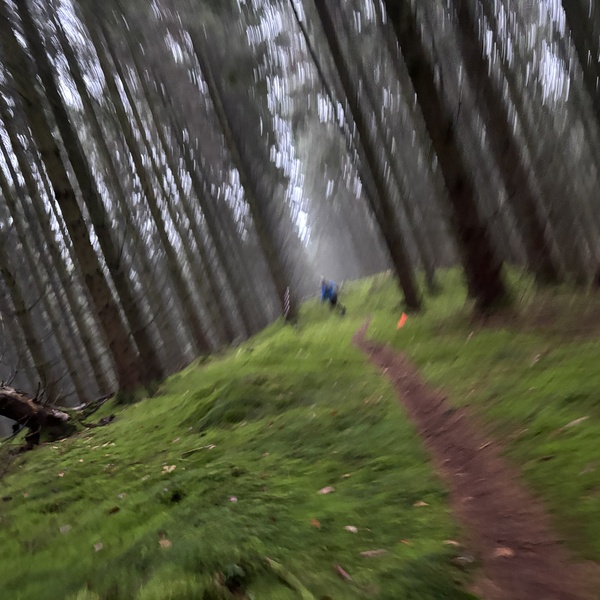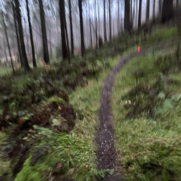 Beautiful green singletracks and gravel paths through the forest – classic MTB tracks. Very runnable, though it got muddy by the final loop. I ran with my vest: water, energy drink, gels, plus waterproof pants and headlamp just in case. My energy strategy was spot on (~60g carbs/hour) which kept me strong throughout.
