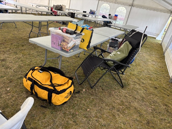 Arriving early meant I could claim a good spot in the shared tent ⛺️ — something I had been lucky enough to book in advance. Lots of tables inside, so I just picked one. Each table was typically shared by 2-4 runners. And I struck gold when Matti decided to sit next to me 🤗. I knew Matti from a few other races, so having a familiar face right there from the start was absolutely brilliant.