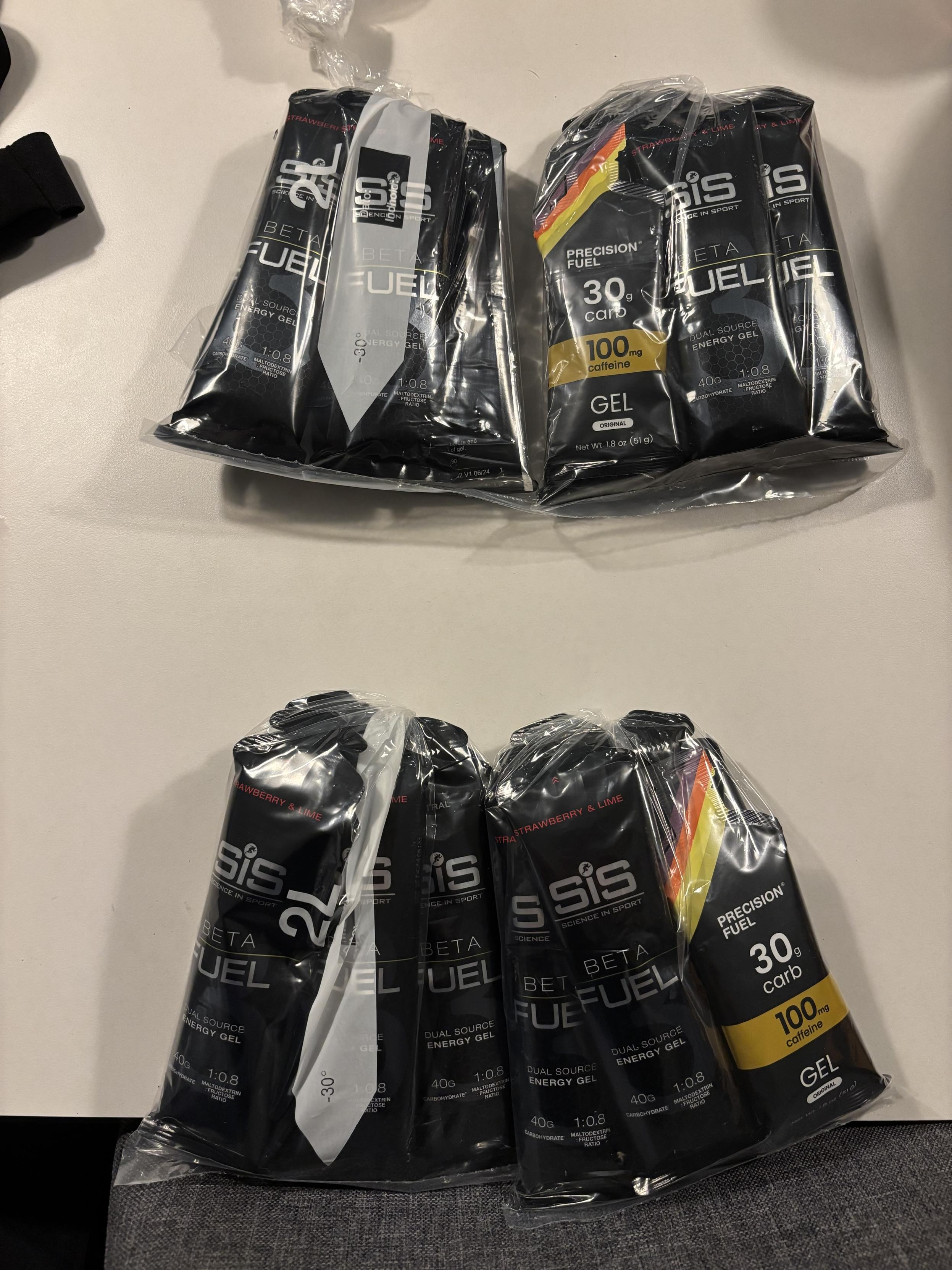 Drop bag (~120K): gels + electrolytes, shoes, socks, t-shirt + base layer, buff/gloves/beanie