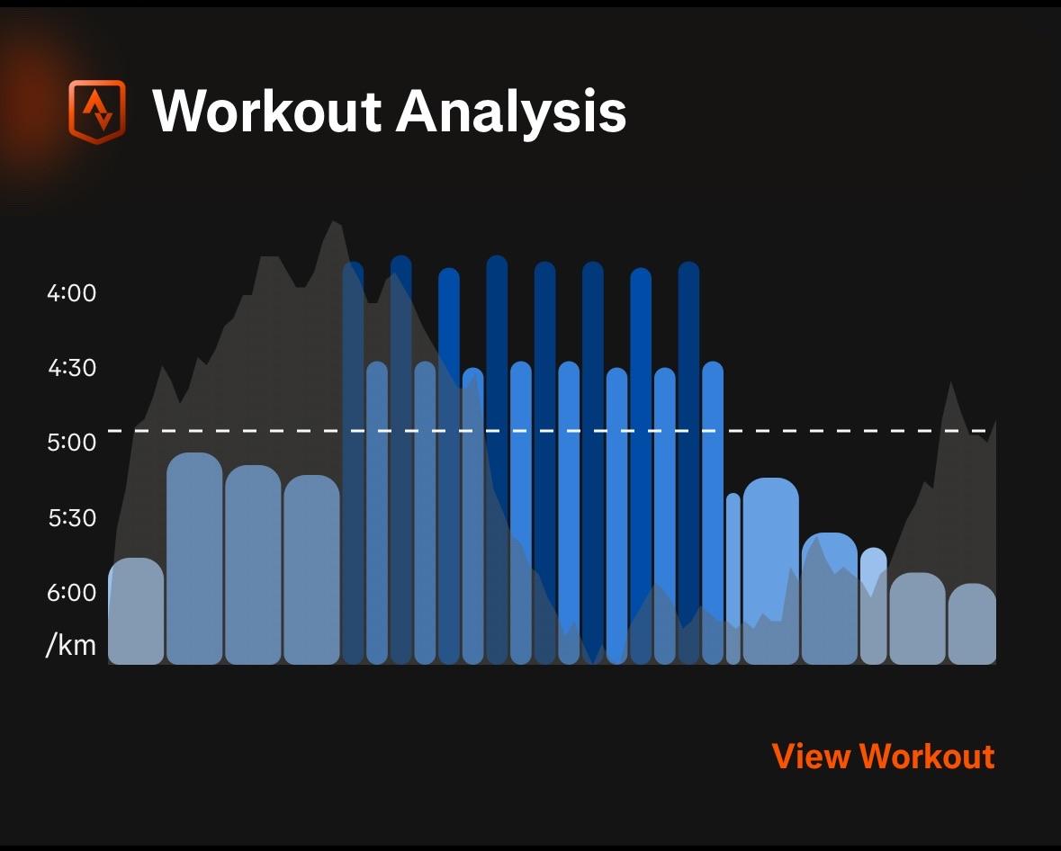 A workout suggested by Runna. Trial period thing ππ»π€©. I configured it with the intention to direct training for Copenhagen Marathon. It is ofc borderline creative as I have a bunch of intermediate trail/ultra races that will mess up any good training plan.